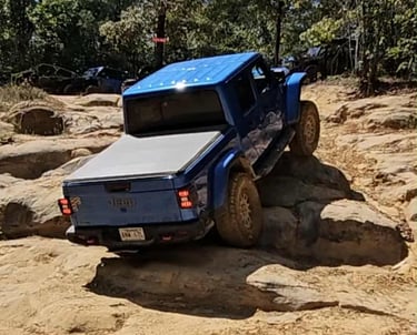 We kicked things off at Stoney Lonesome OHV Park, where slick red-clay climbs, water crossings, and technical switchbacks put both driver and Jeep to the test. From there, we tackled Baldie Trail and Little Moab as well as the Badge of Honor Trails in Alabama. Was the perfect mix of steep ledges, off-camber crawls, and wide-open views.